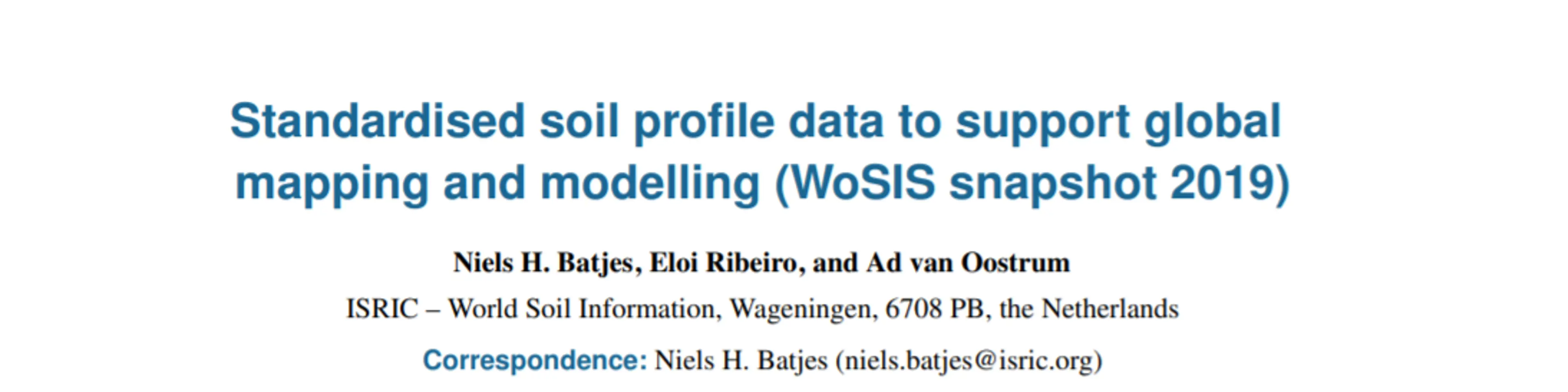 New paper in Earth System Data Science on ‘Standardised soil profile data to support global mapping and modelling’ by our colleagues Niels Batjes, Eloi Ribeiro and Ad van Oostrum (https://doi.org/10.5194/essd-12-299-2020).