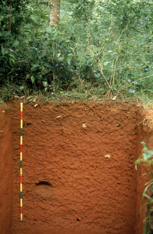 Soils having an argic horizon (a subsurface horizon with distinct higher clay content than the overlying horizon), which has a cation exchange capacity of less than 24 cmolc per kg in some part, either starting within 100 cm from the soil surface, or within 200 cm from the soil surface if the argic horizon is overlain by loamy sand or coarser textures throughout. They have a base saturation (total amount of Ca, Mg, K and Na with respect to the cation exchange capacity) of less than 50 percent in the major part between 25 and 100 cm from the soil surface.