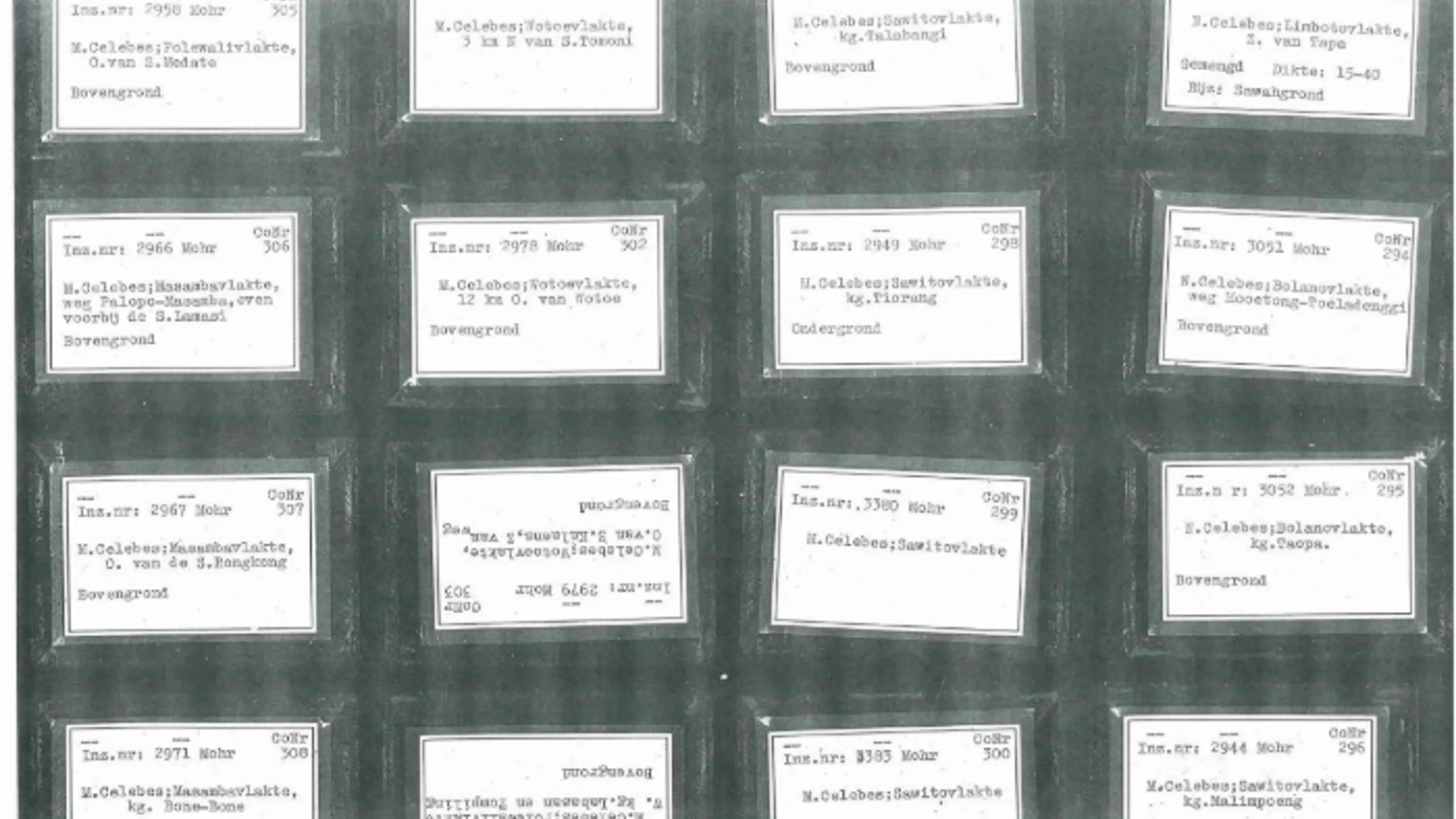The Mohr Collection contains 378 small display boxes with soil sample materials, mainly from the former Dutch East Indies and other countries in Southeast Asia, South America, and Africa.