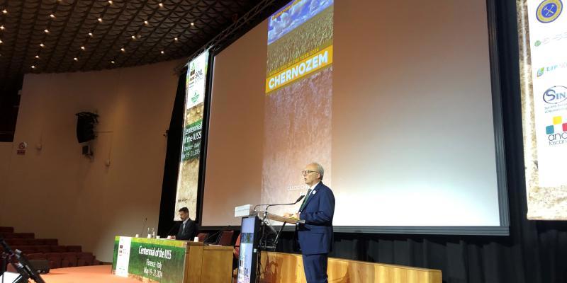 IUSS president Edoardo Constantini presenting the IUSS WSY 2024 The World Soil of the Year (WSY) of 2024 is the typical Chernozem of the Bălţi steppe of the Republic of Moldova. At the Centennial Celebration of the International Union of Soil Sciences (IUSS) on 19-21 May in Florence, Italy, this soil was presented as the first World Soil of the Year.
