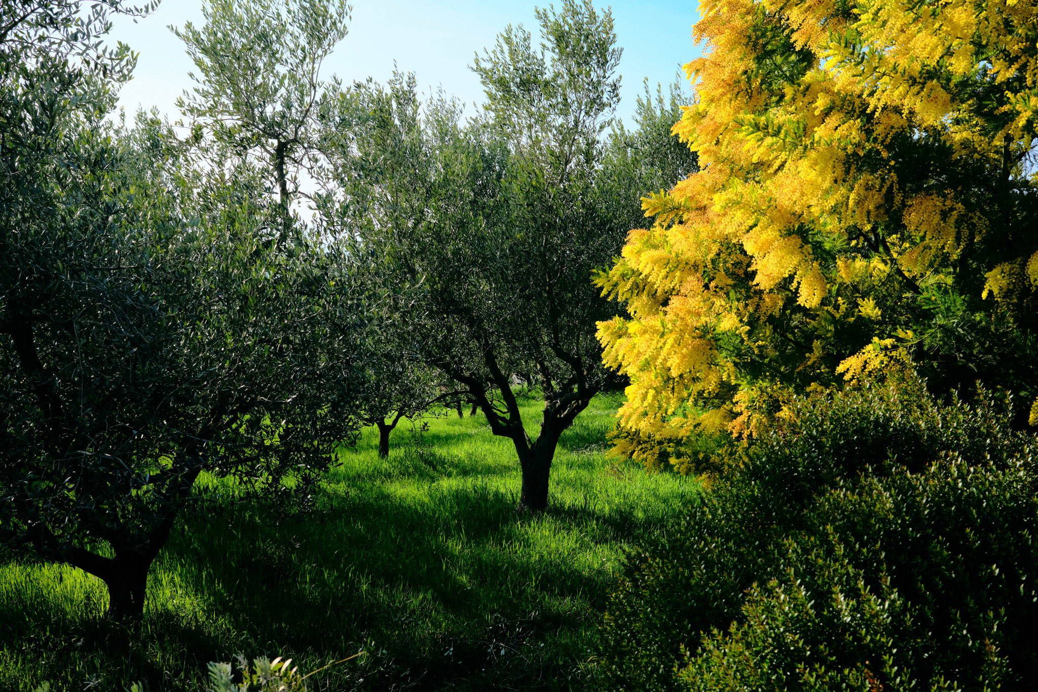 Olive orchards with the ground cover