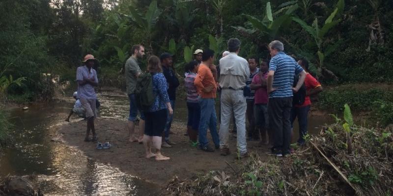 To gain a preliminary understanding of the context of land degradation and land use change, the mission started with a short field trip to the peripheries of Andasibe National Park (140 km east of Antananarivo) to see the effects of shifting cultivation (food crops, ginger plantings) on the steep slopes of the forest area of Vohidrazana and discuss these with the village head and community members. Nearby, the team saw flood damage and sedimentation of an in-stream wier and canals previously irrigating 35 hectares of rice fields. The next day the team had discussions in Moramanga with the District Chief and then with District extension agents for agriculture, livestock and environment as well as representatives of resource user management groups.