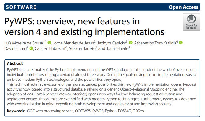 This co-authored paper, with contributions from our colleagues Luis Moreira de Sousa and Jorge Mendes de Jesus, presents a re–make of the Python implementation of the WPS standard. It embraces modern Python technologies and the possibilities they offer. The adoption of WSGI (Web Server Gateway Interface) opens new ways for load balancing request execution and application encapsulation, that are exemplified with modern Python technologies. This work provides a valuable contribution to the development of GLOSIS, developed under Pillar 4 of the Global Soil Partnership (GSP).