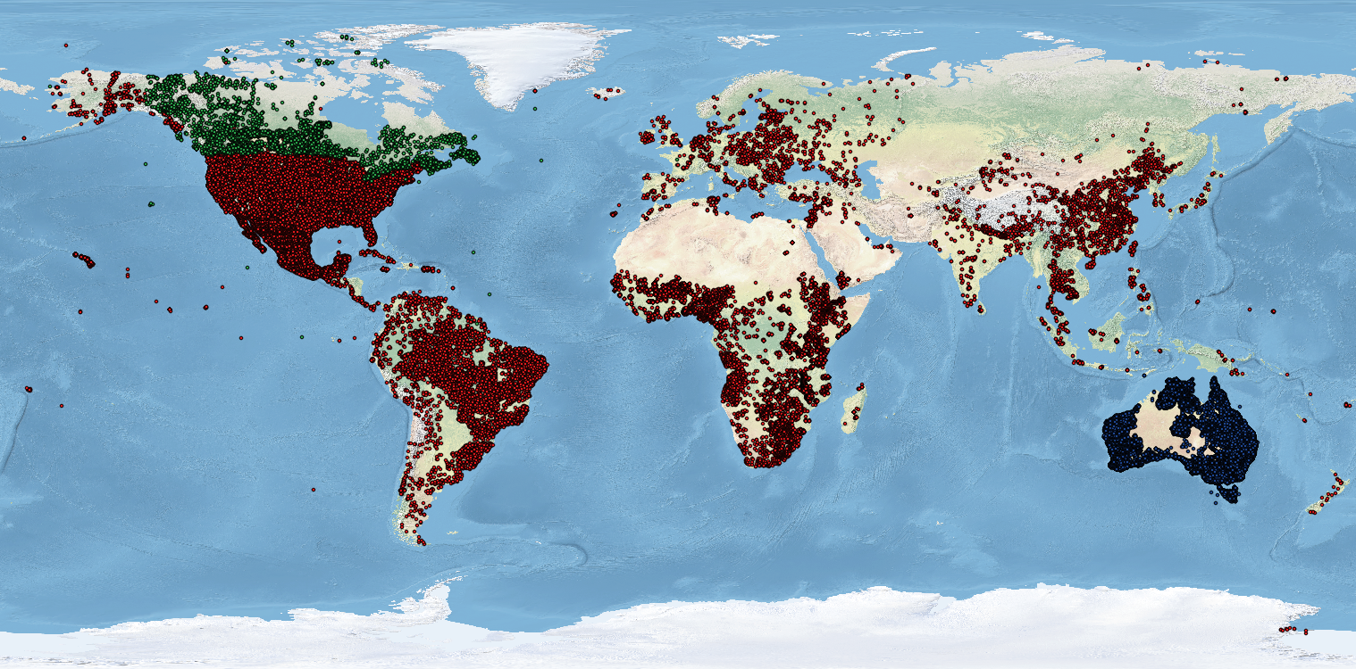 Processing the wealth of data shared with us is an enormous and time consuming task that involves four main steps: a) safeguarding the original data sets in the ISRIC repository, b) importing the data into the WoSIS data model, c) standardising the original data to the WoSIS standard, and d) serving the quality-assessed data to the user community. Stage b) to d) are visualised below using coloured dots.