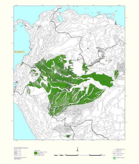 The extrapolation was based on similarity in climate, soils and topography, based on data from Agro-Ecological Zones, soil and terrain from SOTERLAC and the 90 m SRTM Digital Elevation Model. (report ) Areas of ecosystem 2 with Haplic Acrisols