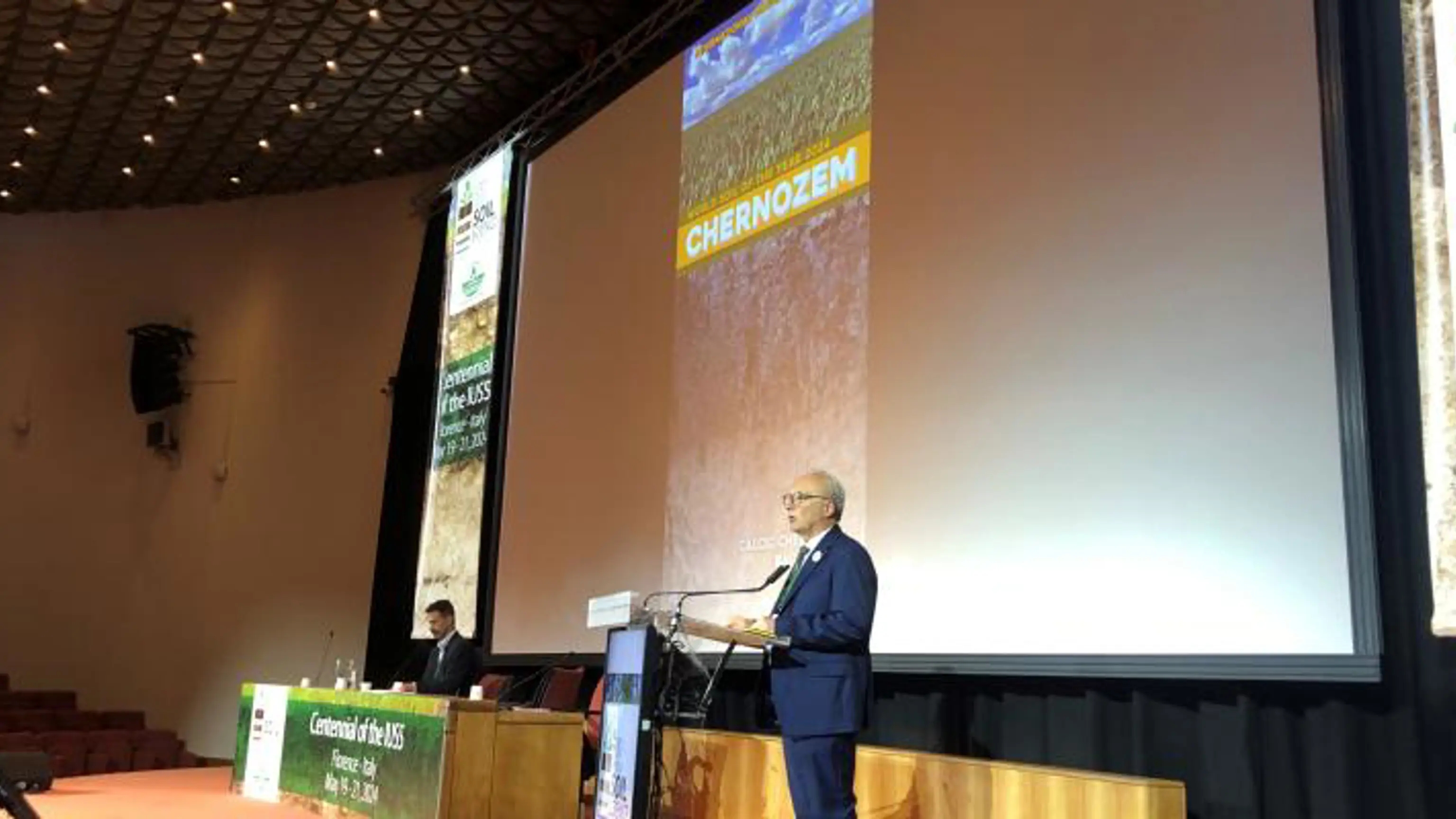 IUSS president Edoardo Constantini presenting the IUSS WSY 2024 The World Soil of the Year (WSY) of 2024 is the typical Chernozem of the Bălţi steppe of the Republic of Moldova. At the Centennial Celebration of the International Union of Soil Sciences (IUSS) on 19-21 May in Florence, Italy, this soil was presented as the first World Soil of the Year.