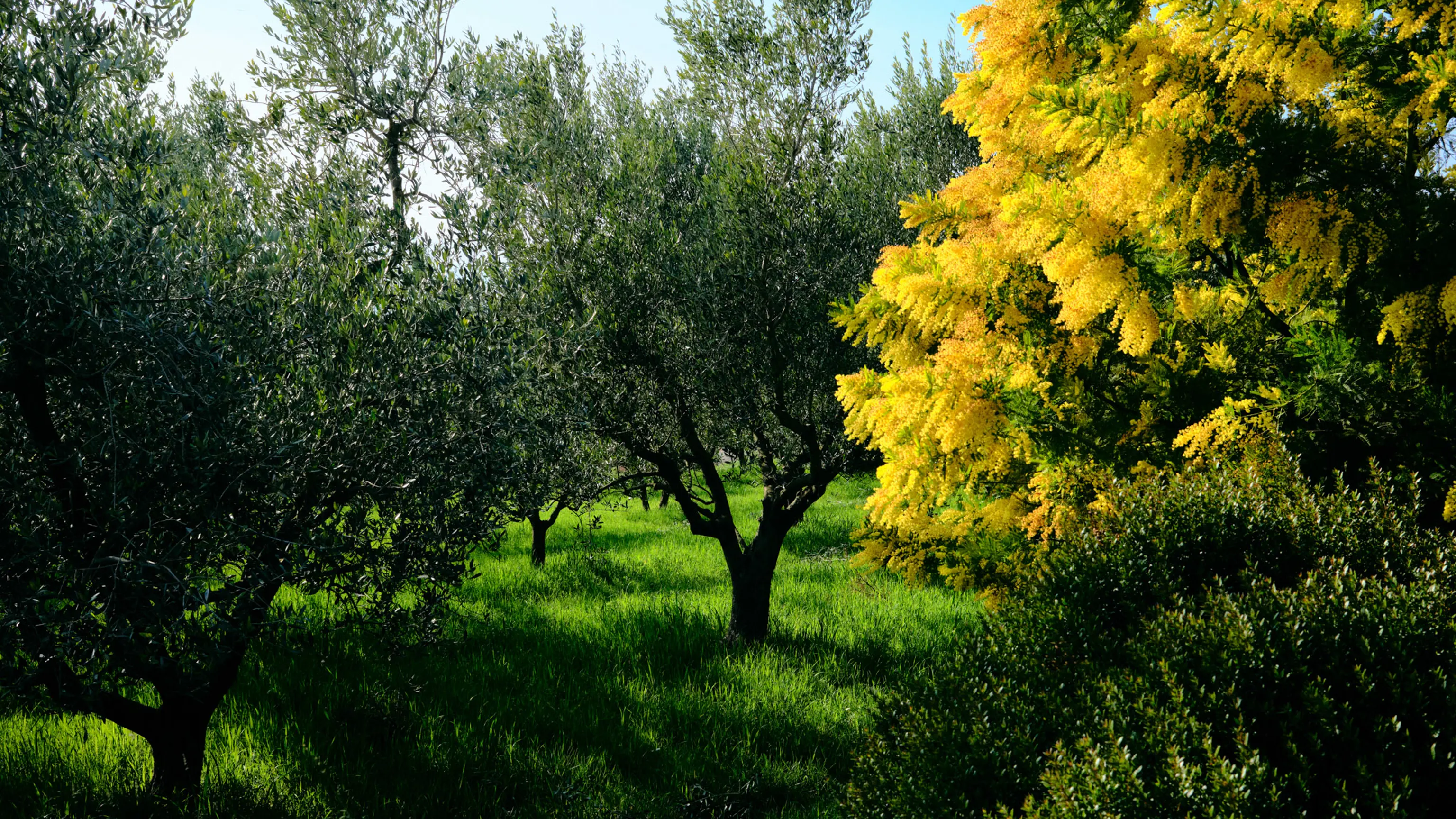 Olive orchards with the ground cover