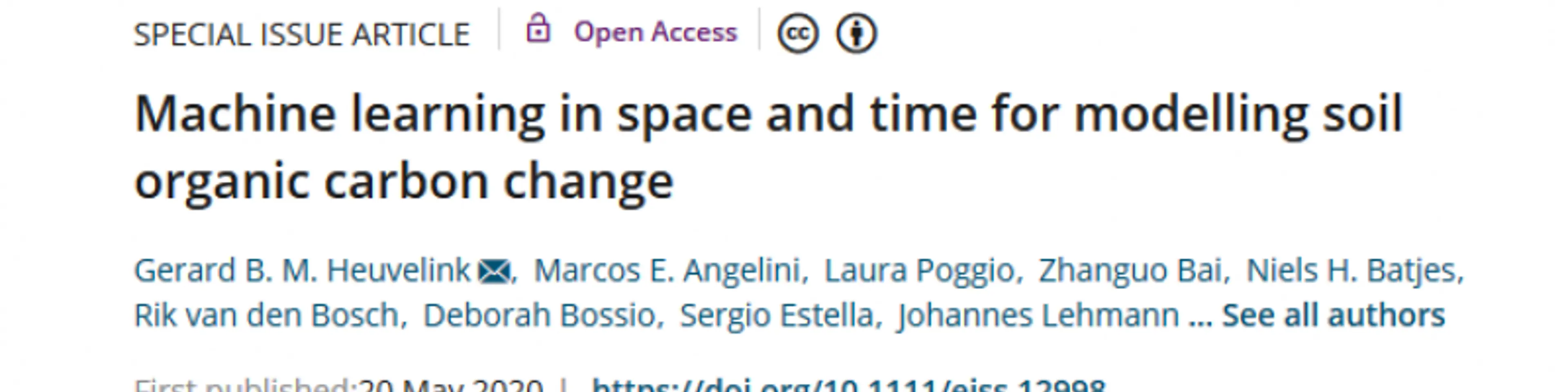 New paper in EJSS on ‘Machine learning in space and time for modelling soil organic carbon change’ by Gerard B. M. Heuvelink, Marcos E. Angelini, Laura Poggio, Zhanguo Bai, Niels H. Batjes, Rik van den Bosch, Deborah Bossio, Sergio Estella, Johannes Lehmann, Guillermo F. Olmedo, and Jonathan Sanderman.