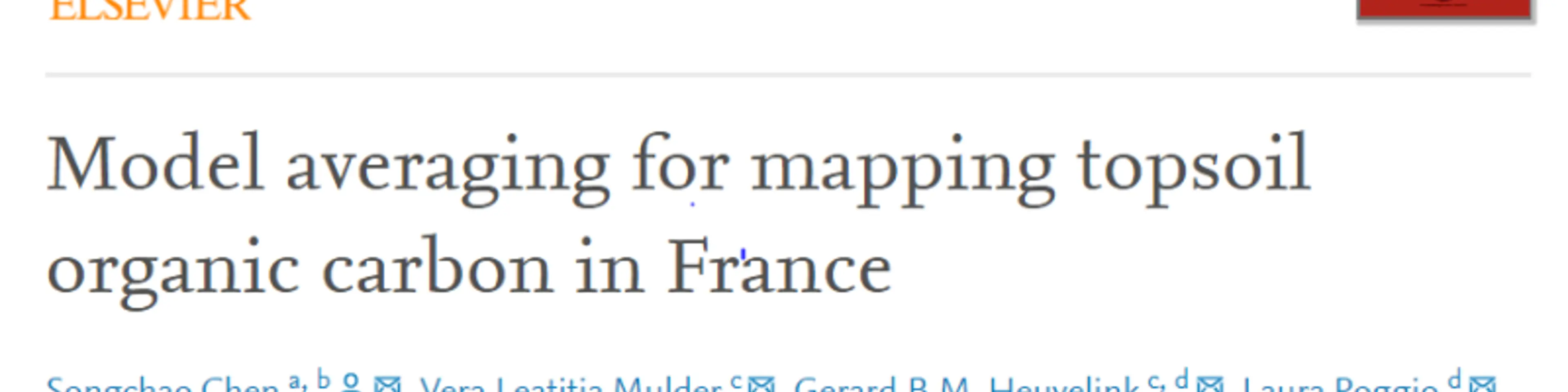 New paper in Geoderma on ‘Model averaging for mapping topsoil organic carbon in France’ by Songchao Chen et al. with contributions from our colleagues Gerard Heuvelink and Laura Poggio.