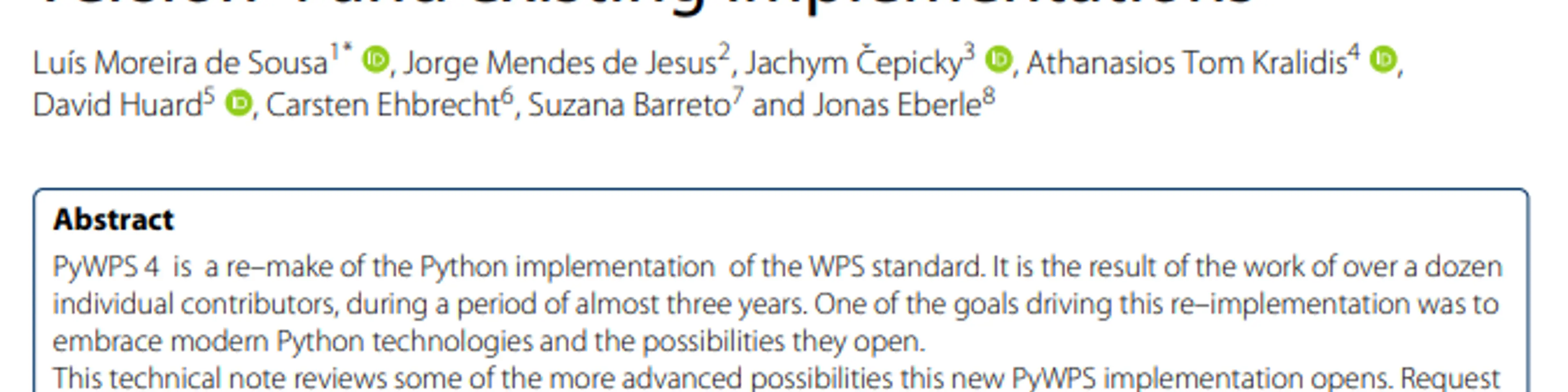 This co-authored paper, with contributions from our colleagues Luis Moreira de Sousa and Jorge Mendes de Jesus, presents a re–make of the Python implementation of the WPS standard. It embraces modern Python technologies and the possibilities they offer. The adoption of WSGI (Web Server Gateway Interface) opens new ways for load balancing request execution and application encapsulation, that are exemplified with modern Python technologies. This work provides a valuable contribution to the development of GLOSIS, developed under Pillar 4 of the Global Soil Partnership (GSP).
