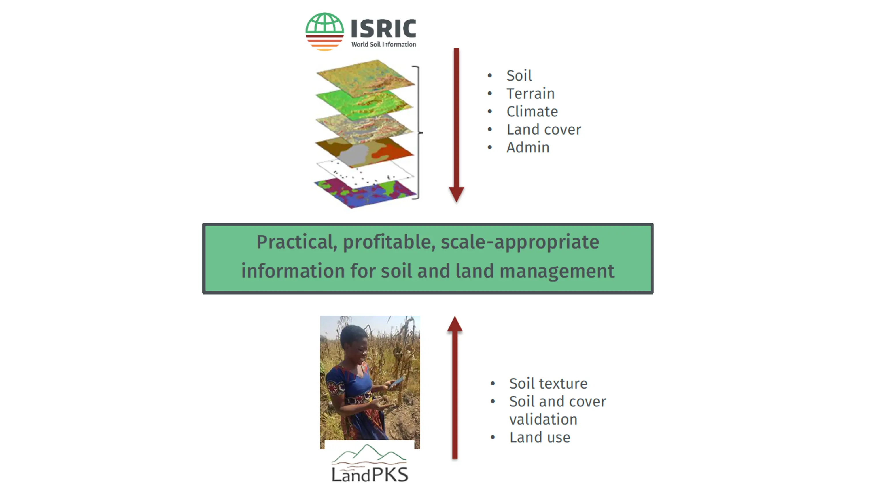 • Integrate LandPKS into ISRIC GIS environment and data sources i.e. the ISRIC soil data hub, SoilGrids, Soil Quality App (SQApp);